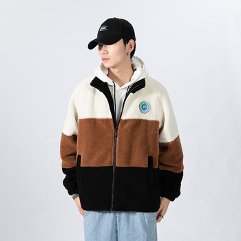カスタマイズされた高品質メンズ冬用シェルパジャケットカジュアルポリエステルジッパー付き閉鎖花飾りOEMサービス利用可能