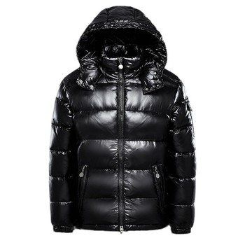 Kış erkek moda şık siyah yüksek kaliteli kapüşonlu üst parlak özel balon ceket erkekler